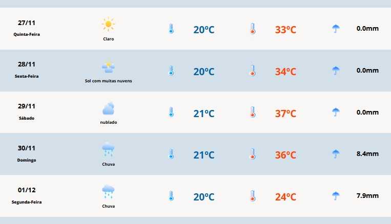 Hoje, em Cerro Largo, a temperatura mínima será de 22°C e a máxima de 33°C.