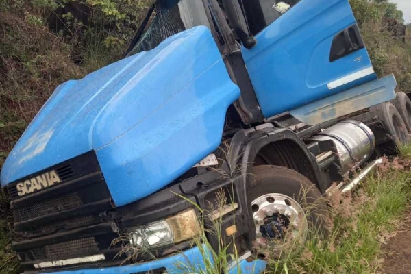 Um "cavalo mecânico" Scania, desengatado, acidentou-se na rodovia BR 392, em Cerro Largo.