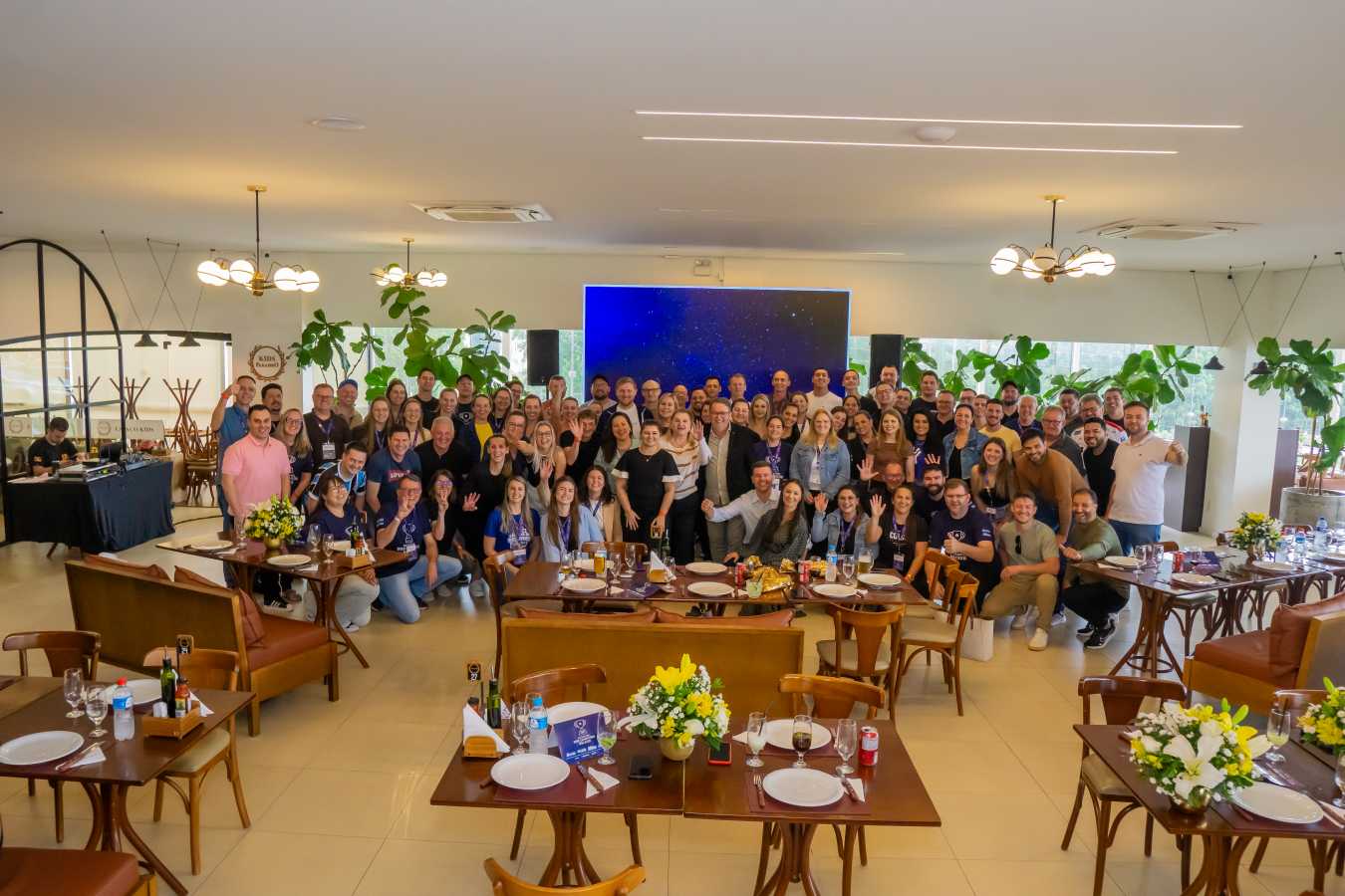 Após a premiação, Eleonor, Júnior e Leise Becker reuniram as equipes no palco para um brinde coletivo. O encerramento teve fogos de artifício, jantar festivo na Churrascaria Maestro e show acústico com Loiara Gewehr, coroando uma noite de emoção e gratidão.