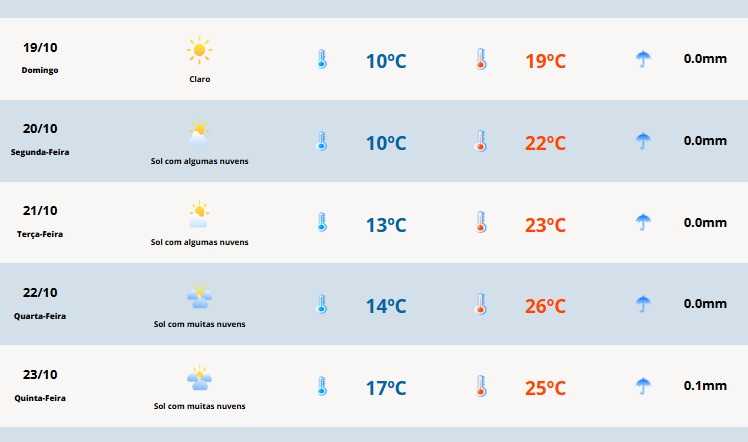 Em Cerro Largo a temperatura mínima será de 10°C e a máxima de 19°C.