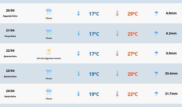 Em Cerro Largo, as temperaturas oscilam entre 17ºC e 29ºC.