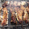 Além de churrasco de gado, há carne suína, maionese e salada mista
