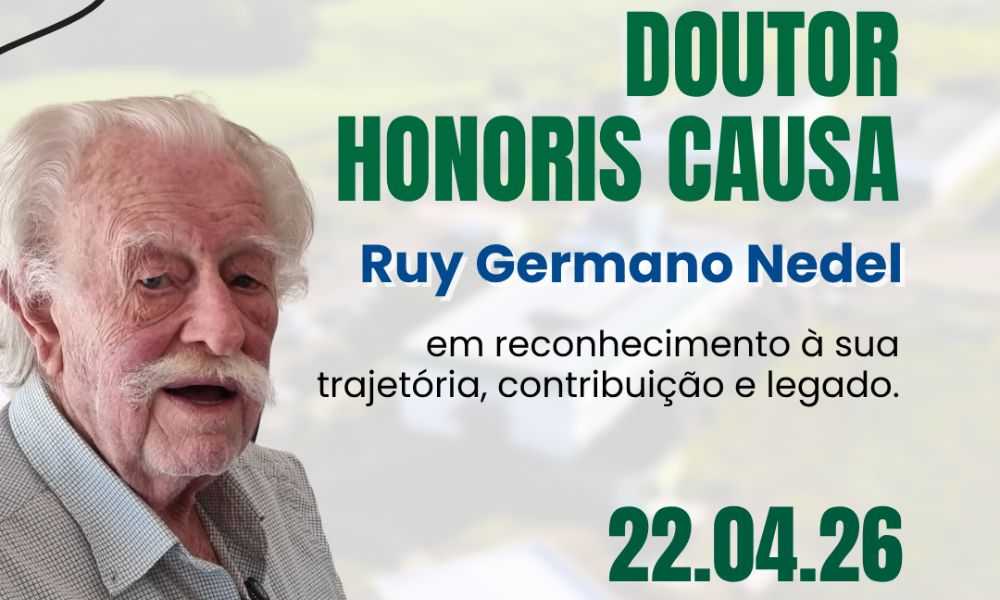 A Universidade Federal da Fronteira Sul (UFFS) realizará no próximo dia 22 de abril de 2026, às 19h30min, no saguão do Bloco A, a cerimônia de outorga do título de Doutor Honoris Causa ao médico, ex-deputado federal constituinte, escritor e defensor da cultura missioneira Ruy Germano Nedel.