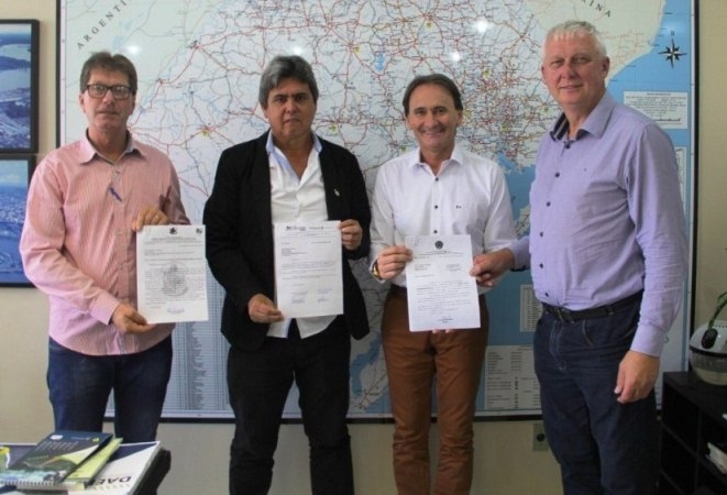 O líder do MDB na Câmara de Vereadores, Paulo Kipper, o presidente do Poder Legislativo, Lauri Wilchen (PT) e o prefeito Valter Hatwig Spies (PP), estiveran na última quinta-feira (28), em audiência com o secretário estadual de Logística e Transportes, Juvir Costella (MDB), em Porto Alegre.