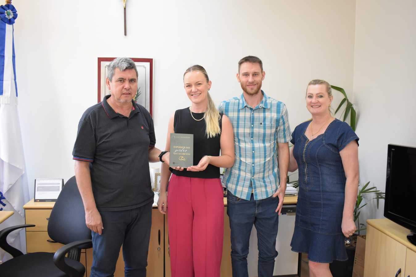 O prefeito Paulo Kipper, acompanhado da secretária da Educação e Cultura, Neiva Fogolari, recebeu em seu gabinete a autora do livro O Poder do Perdão no Casamento, Diane Neubüser, acompanhada de seu esposo Rodrigo, na quinta-feira (21/12).