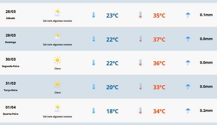 Neste sábado (28), Cerro Largo deve registrar temperaturas oscilando entre 23°C e 35°C.