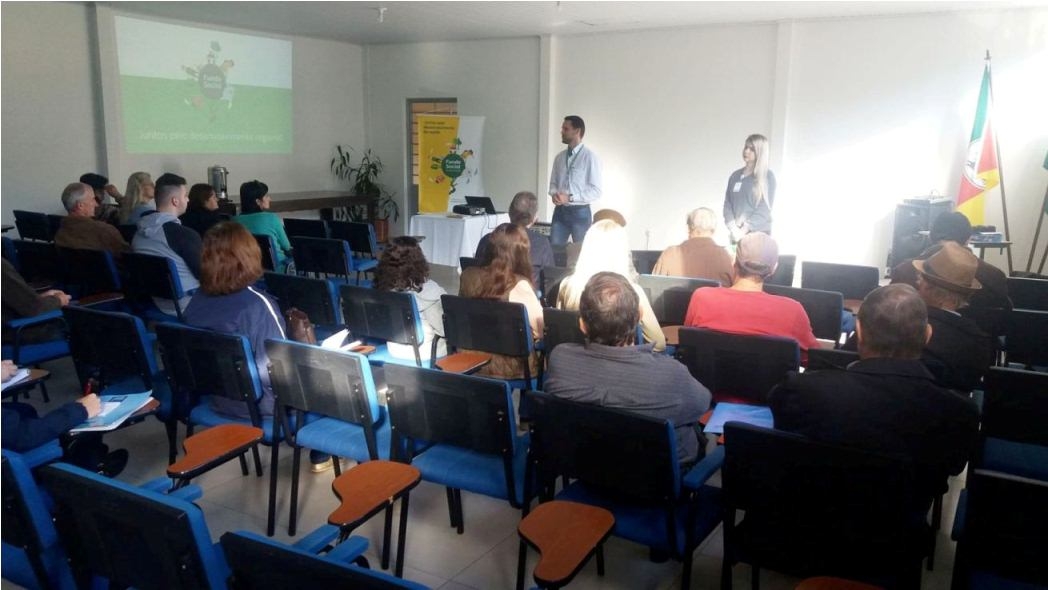LANÇAMENTO - O Fundo Social foi lançado em Cerro Largo na manhã de quarta-feira (15), no auditório da Associação Comercial e Industrial (ACI). A explanação do regulamento e do funcionamento do fundo coube ao gerente Rodrigo Neuberger, auxiliado pela colaboradora Cátia Gallas.