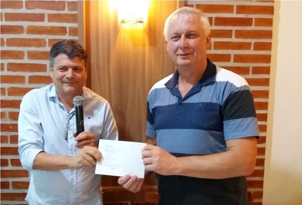 O presidente Edson Santos agradeceu a todos os envolvidos, que deram sua parcela de contribuição no sucesso da 12ª Expocel. E fez a entrega do comprovante de depósito bancário, do resultado financeiro para o Município de Cerro Largo, ao prefeito Valter Spies.