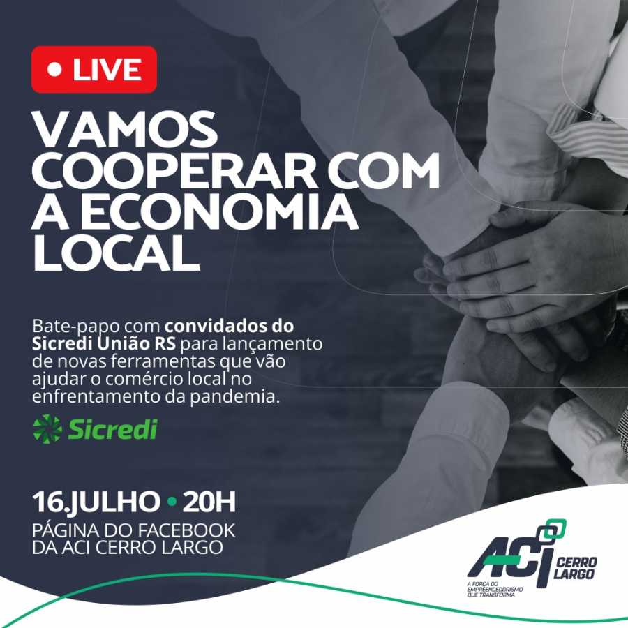 Nesta quinta-feira, 16 de julho, a partir das 20h, acontecerá uma Live da ACI Cerro Largo, que terá como convidado especial a Sicredi União RS.