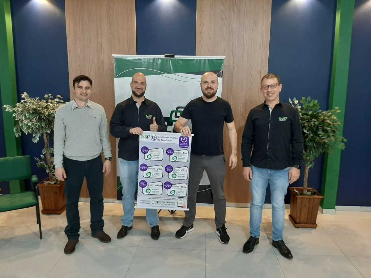 Participaram da reunião, o presidente entidade Henrique Lunkes, o tesoureiro Jorge Schommer e o secretário executivo da ACI Rodrigo Feitosa, juntamente com os representantes da empresa 1Cel, Lucas Leal e Luciano Almeida.