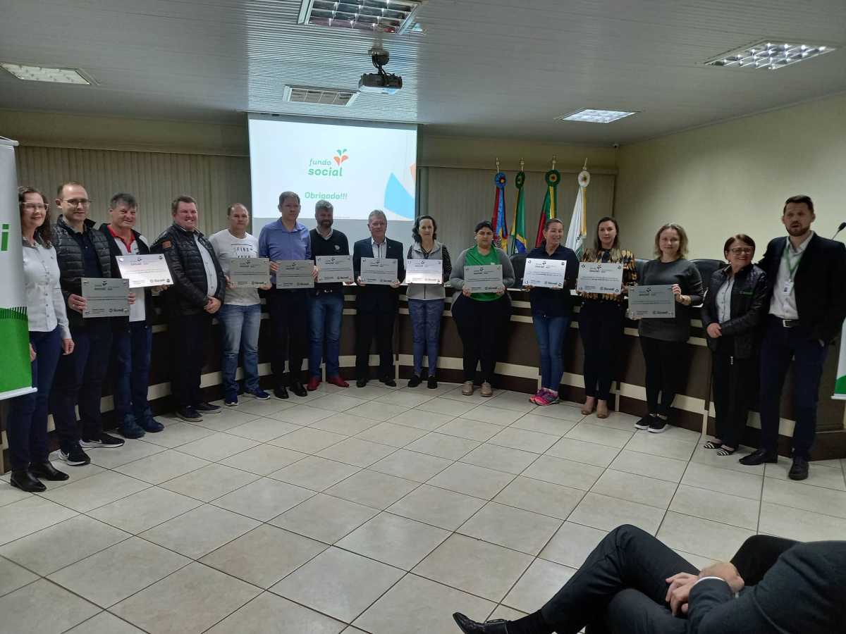 A Câmara de Vereadores de Cerro Largo sediou, na noite de quarta-feira (21/9), evento organizado pela agência local do Sicredi União RS/ES, quando foram apresentadas as entidades contempladas com o Fundo Social 2022, divulgados números da iniciativa e entregues placas aos agraciados com recursos.