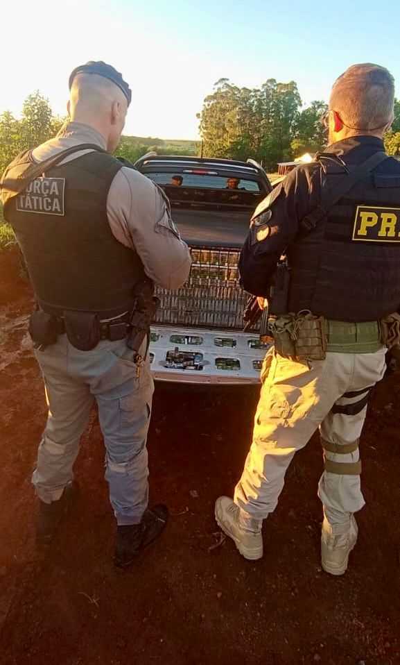 Durante a operação de combate ao crime, Policiais Rodoviários Federais e Brigada Militar abordaram uma caminhonete que transitava pela via. Ao verificarem o veículo, os policiais localizaram diversas caixas de cigarros na caçamba do veículo, de fabricação estrangeira (quantidade exata ainda sendo contabilizada).