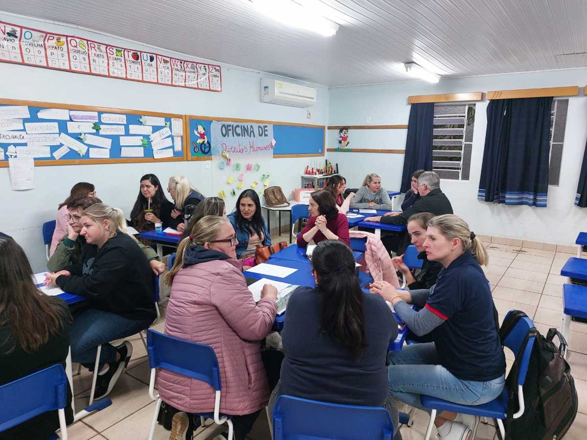 Na oportunidade, a secretária Neiva Fogolari fez a abertura dos trabalhos, com as orientações gerais e questionamentos destinados ao grande grupo. Na sequência, foram organizados grupos de trabalho, por níveis de ensino, em que foram trabalhados temas específicos com os profissionais.