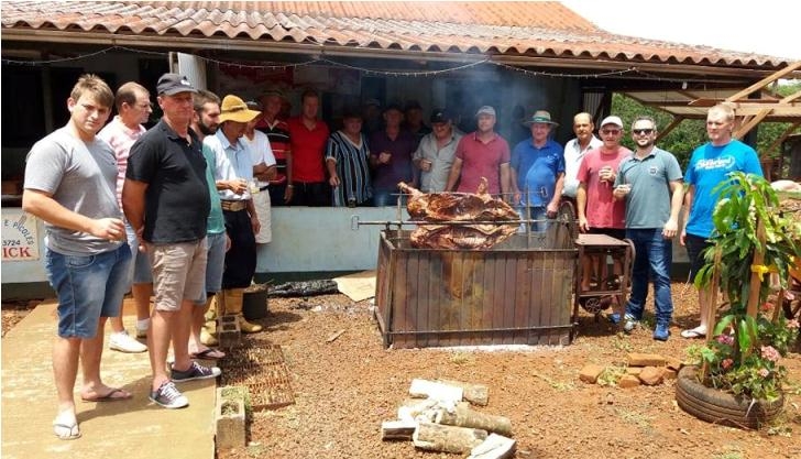 No último sábado, dia 14, o médico veterinário Bernardo Gulartt Melo, diretor da BMVet Serviços Veterinários e Negócios e presidente da ACI, 'pilotou' a churrasqueira rotativa no Bar do Roxo, em Linha Tremônia, onde um grupo de clientes e amigos confraternizou com um saboroso leitão no rolete, ao meio-dia.