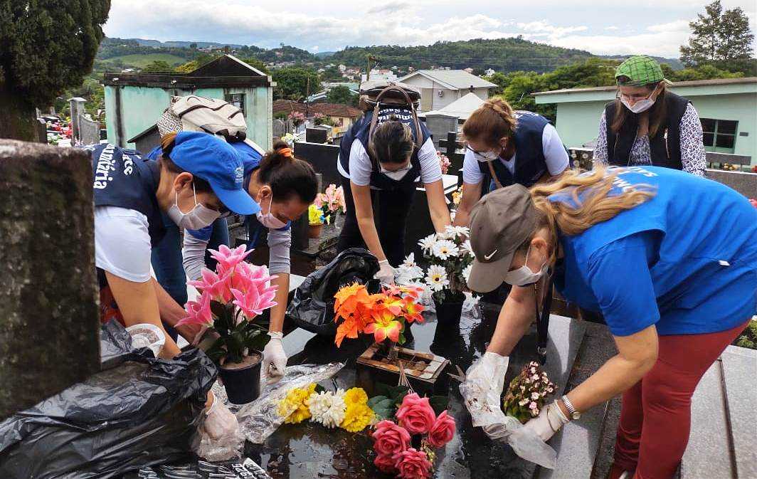 Na manhã desta segunda-feira (30/11), agentes comunitários de saúde e agentes de endemias, da Secretaria de Saúde de Cerro Largo, realizaram a limpeza no cemitério municipal.