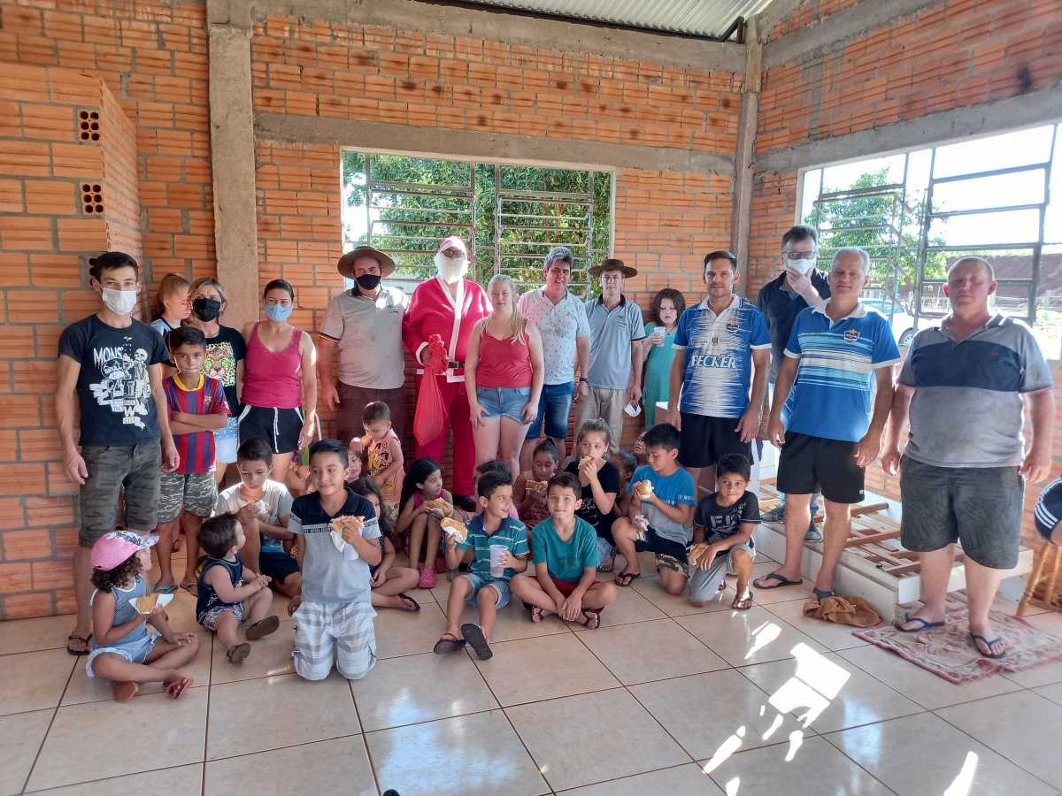 Organizada por Cláudia Lermen, Volni Lisboa, Nica John, Caroline Oliveira, Cristian Lisboa e Vera Lisboa, a confraternização reuniu cerca de 50 crianças da vila, que receberam presentes e doces do bom velhinho, além de lanche (cachorro-quente e refrigerante).