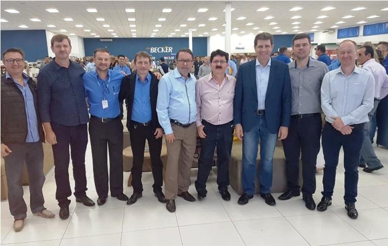 PRESENÇAS - Além do diretor-presidente, a reinauguração contou com a presença do diretor Júnior Becker; gerente da loja, Márcio Nuske; deputado estadual Ernani Polo (PP/RS); assessor do deputado federal Pedro Westphalen (PP/RS), Leandro Maehler; prefeito de Três de Maio, Altair Copatti; presidente da Câmara de Vereadores, Nelci Ângelo Recalcati; presidente da ACI, Luis Fernando de Souza; além de diretores, funcionários e clientes da empresa.