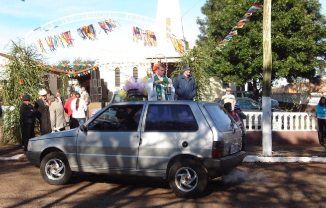 9h, Início da Procissão do Colono e do Motorista, com saída em frente à Igreja Matriz e chegada no local da festa, no Bairro Brasília, com a Benção dos Veículos;