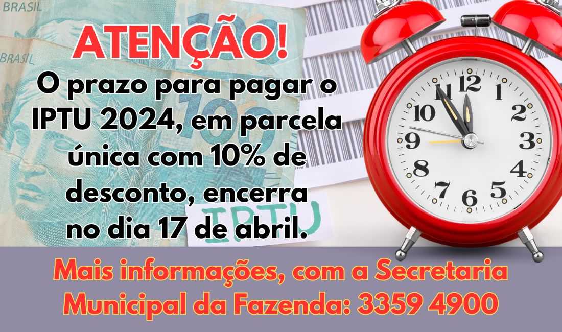Obs.: Caso o contribuinte não tenha recebido o seu carnê do IPTU 2024, o mesmo poderá ser retirado na Prefeitura Municipal.