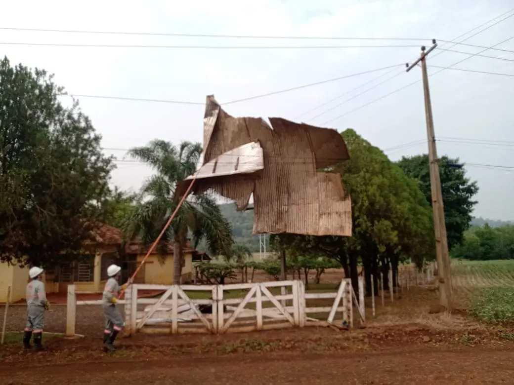 Imediatamente os plantonistas Joel Reis da Silva e João Oneide Rocha dos Santos (Nei), do Posto de Atendimento de Cerro Largo, deslocaram-se até a Linha Encantado, logo adiante do Bairro Brasília, e constataram que o telhado havia caído sobre a rede de média tensão da RGE, atingindo também a rede de baixa tensão da Cermissões, desarmando os dois sistemas elétricos.