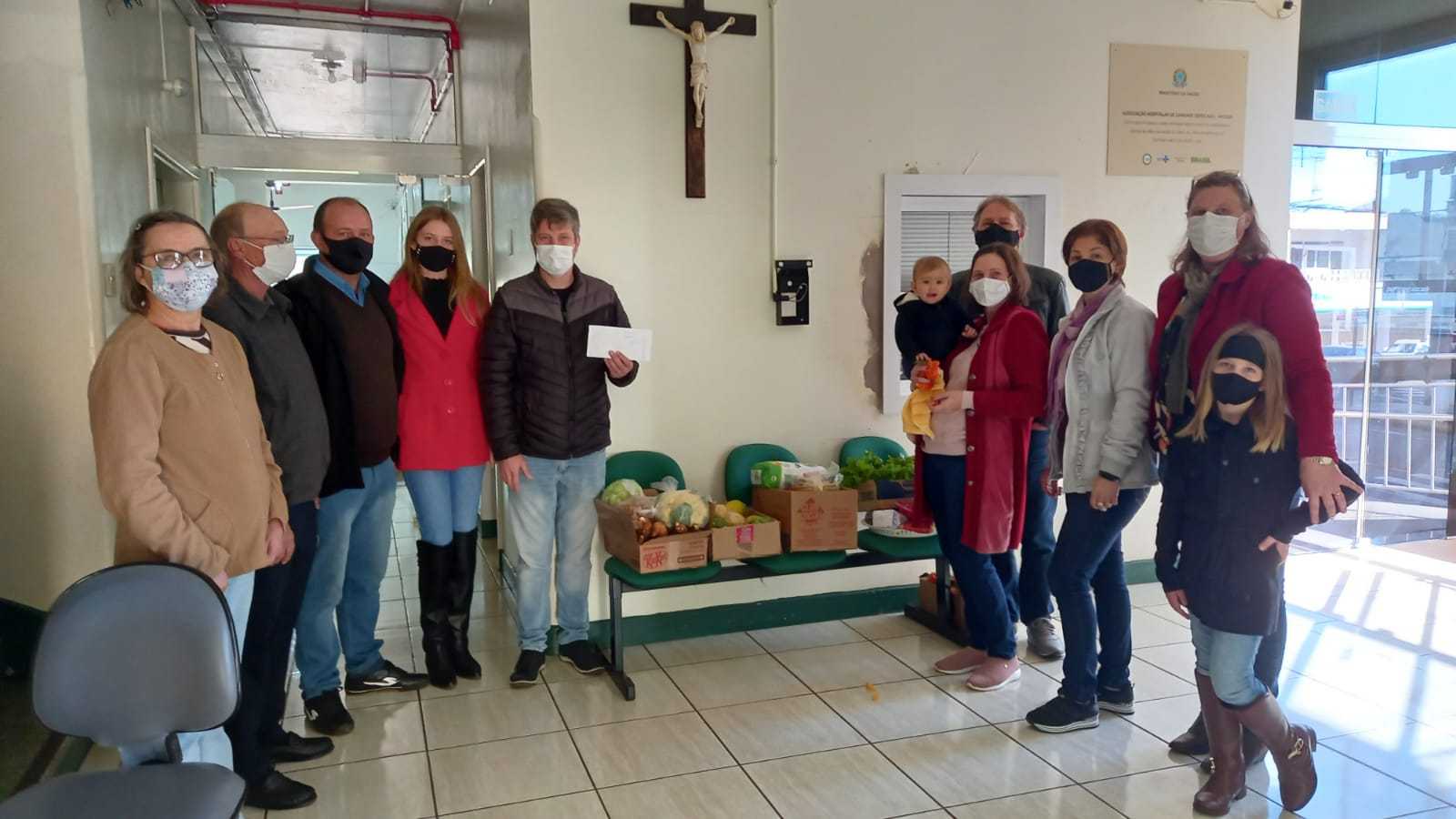 Uma equipe de voluntários da Comunidade da Paz fez a entrega dos alimentos e do dinheiro ofertado durante o culto, ao diretor administrativo do hospital, Ademir Hartmann.