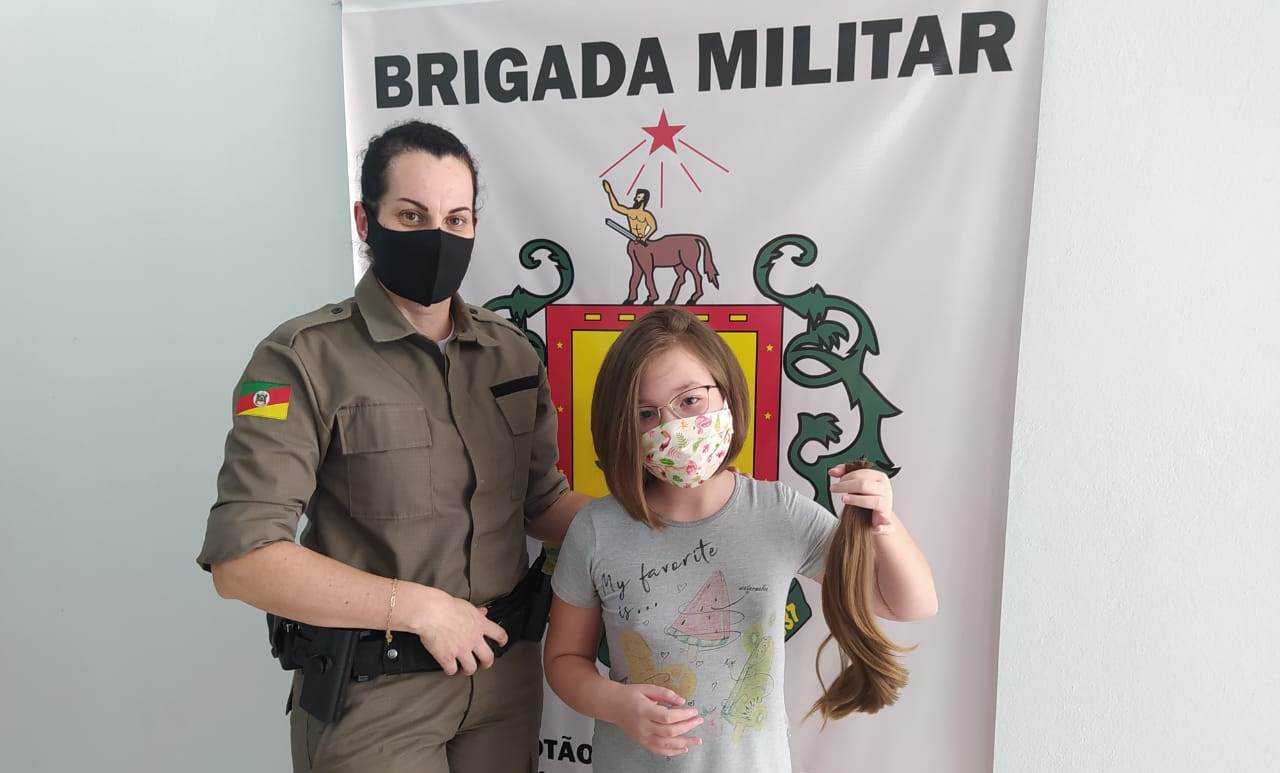 Ontem (16/6), compareceu na Brigada Militar de Cerro Largo a pequena Mel Danieli Wisniewski, de 10 anos de idade, para doar uma mecha de seus cabelos em prol da campanha Cabelos de Aço, da Brigada Militar.