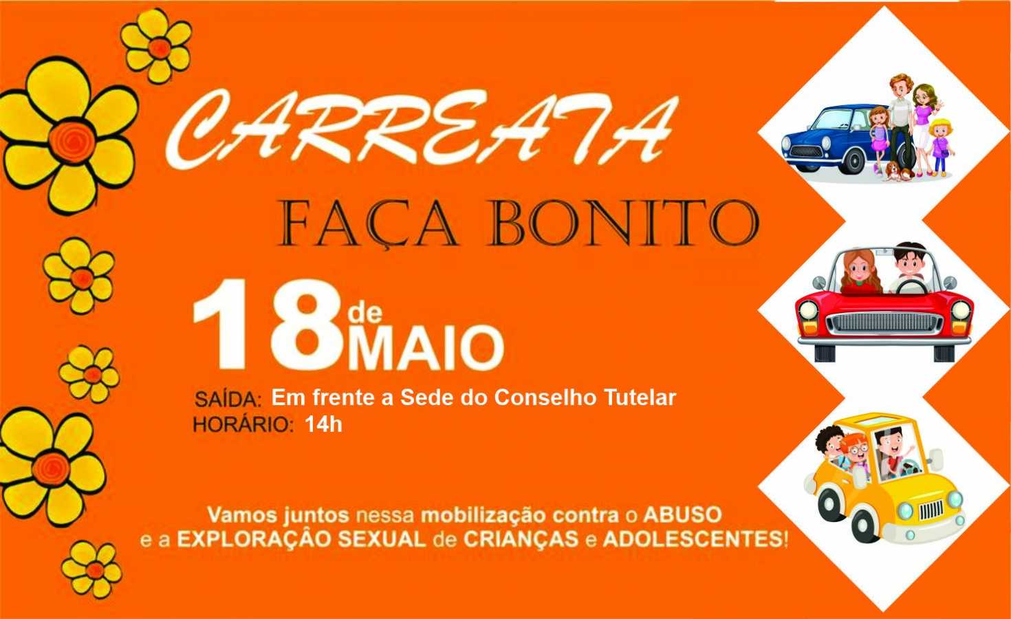 Será nesta quinta-feira, dia 18 de maio às 14h, com saída em frente ao Conselho Tutelar.