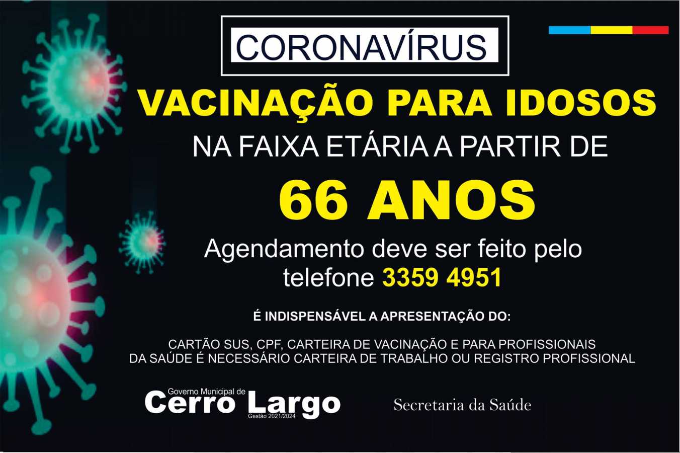 Solicita-se que pessoas nessa faixa etária (66 anos ou mais) entrem em contato pelo telefone 3359-4951 para agendamento da aplicação da vacina que será realizada no Posto Central.
