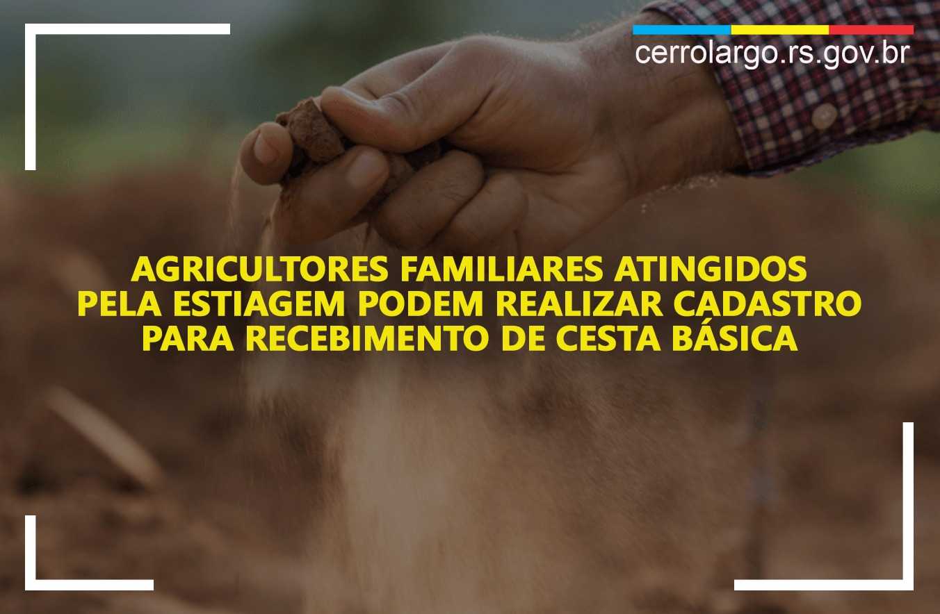A Prefeitura de Cerro Largo, por meio da Secretaria Municipal de Agricultura e Expansão Econômica, abre inscrições para famílias de agricultores interessadas em receber cestas básicas, que foram atingidas pela estiagem. Os recursos destinados para a compra dos alimentos são oriundos da Defesa Civil.