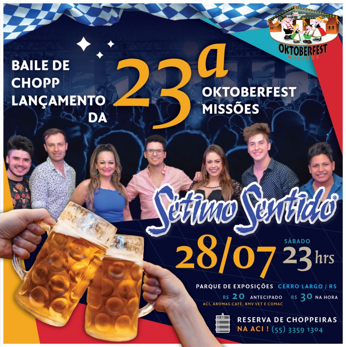 Para oficializar a contagem regressiva de mais esta edição da Oktoberfest Missões, será realizado neste dia 28 de julho um Baile de Chopp, com animação da banda Sétimo Sentido, oportunidade na qual serão apresentadas as principais atrações do evento que acontecerá em outubro. O baile acontecerá no pavilhão central do Parque de Exposições.