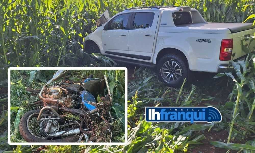 O piloto da moto, um homem de 43 anos, morreu no local. Dois passageiros que estavam na caminhonete tiveram ferimentos leves.