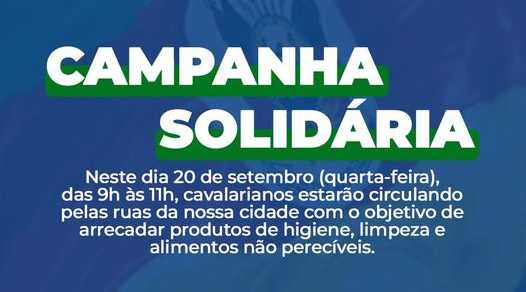Nesta quarta-feira, dia 20 de setembro (feriado do Dia do Gaúcho) - das 9h às 11h - cavalarianos estarão circulando pelas ruas de Cerro Largo, com o objetivo de arrecadar produtos de higiene, limpeza e alimentos não perecíveis, em benefício dos municípios atingidos pelas fortes chuvas no Rio Grande do Sul.