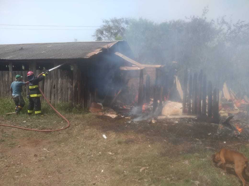 Por volta do meio-dia de sexta-feira (22/9), os Bombeiros Voluntários de Cerro Largo foram acionados para atender uma ocorrência de incêndio em uma casa de madeira, localizada ao lado de um galpão na Linha Santa Cruz, interior do município.