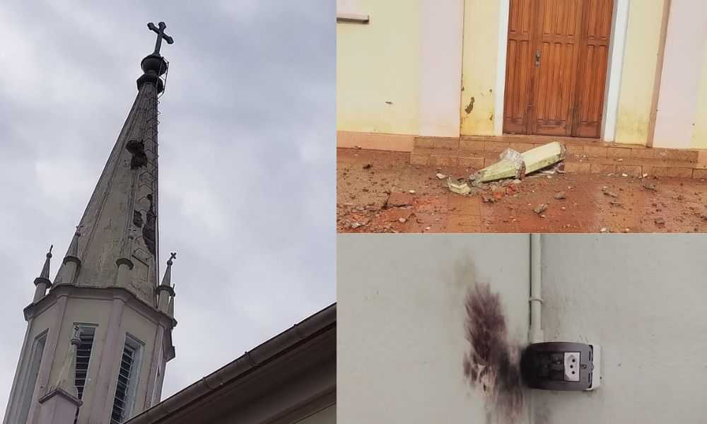 Além de danificar a estrutura da torre - com a força do impacto, alguns pedaços chegaram a atravessar a rua - o raio causou danos na parte elétrica e arrebentou a espia do sino.
