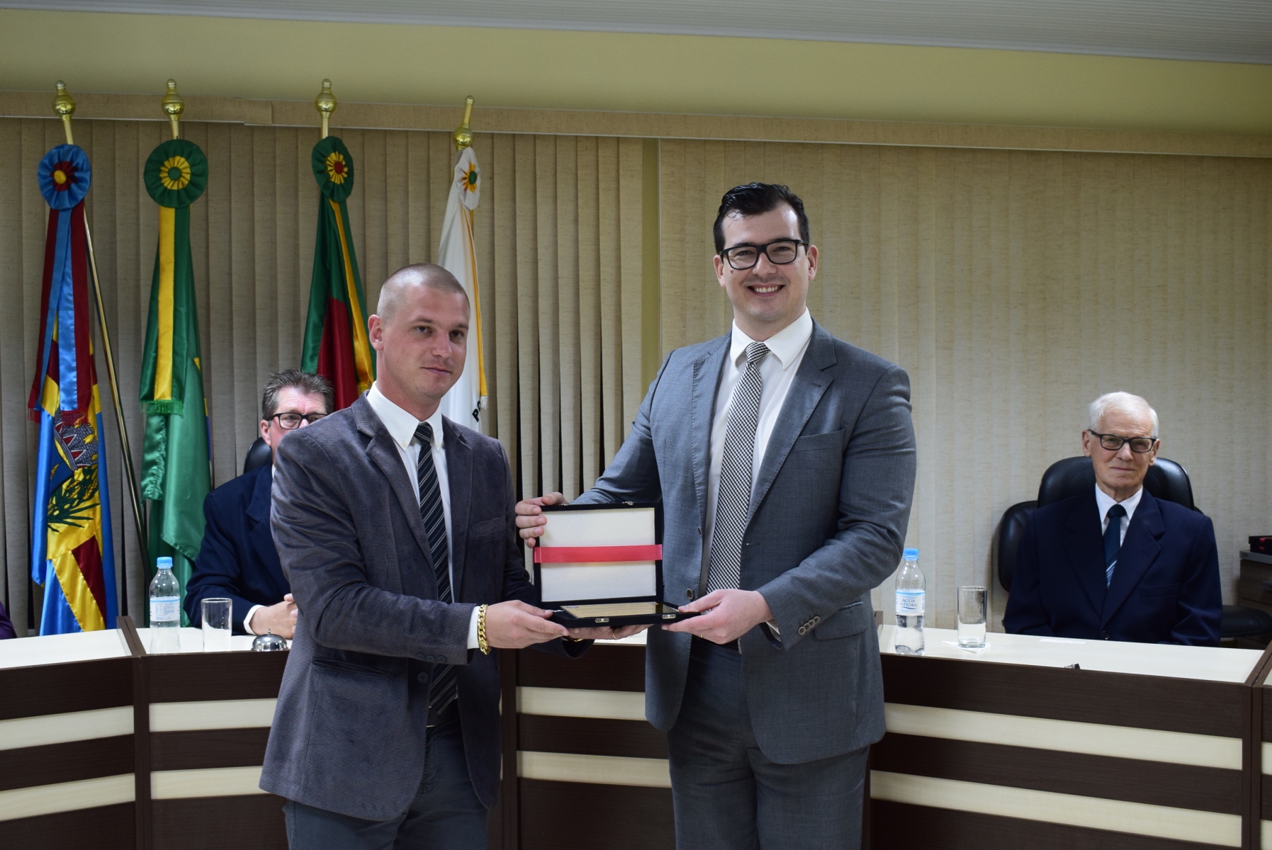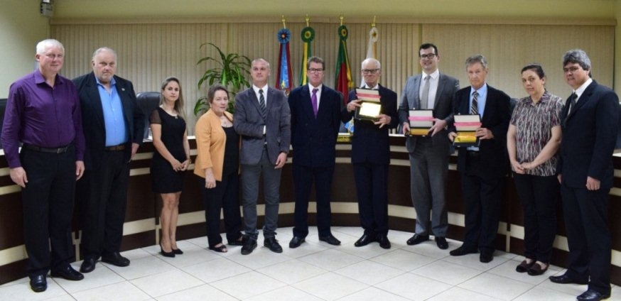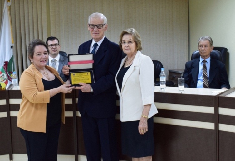 Na sexta-feira, 4 de outubro, dia se comemorou 117 anos de fundação da Colônia Serro Azul, que originou o município de Cerro Largo, a Câmara de Vereadores realizou uma sessão solene para entrega dos títulos de Cidadão Honorário ao professor e historiador Guido Caildo Henz (indicado pelo vereador Andrei Machado - PP) e ao juiz de Direito Marco Antonio Preis (indicado pelo vereador Alberto Frantz Júnior - PDT) e da comenda de Personalidade Emérita ao agricultor e sindicalista José Nelmo Ten Caten (indicado pelo vereador Lauri Felipe Wilchen - PT). Além dos edis, a sessão foi prestigiada pelo prefeito Valter Hatwig Spies, demais autoridades, familiares e amigos dos homenageados.