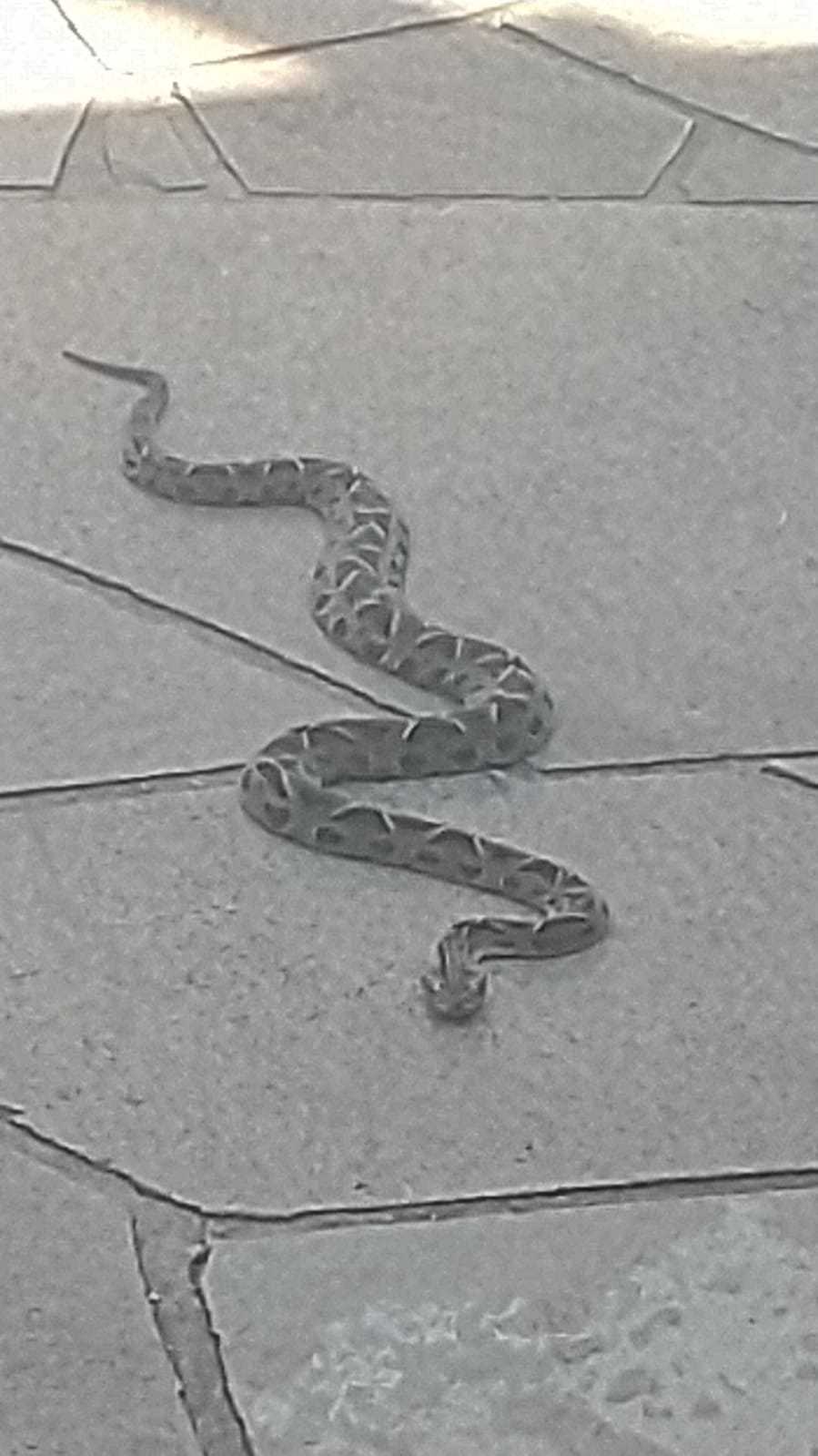 Tratava-se de uma jararaca com aproximadamente 1 metro. Várias pessoas estavam próximas, sem noção do risco que corriam.